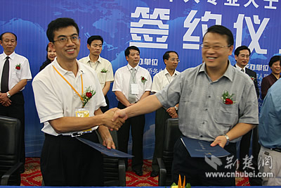 荊楚網(wǎng)消息 記者劉暢、姚啟慧報(bào)道:華創(chuàng)會第一天就掀起了高潮,今天下午在武昌科技會展中心,來自四面八方的客商頻頻微笑握手,簽下的協(xié)議項(xiàng)目投資總額超過30億元。