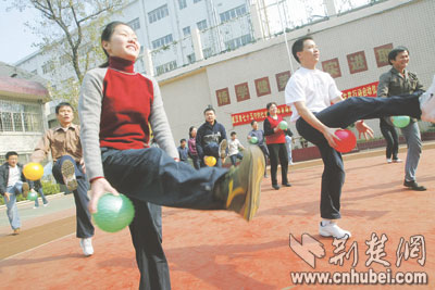 荊楚網(wǎng)(楚天都市報(bào))(記者潘勤實(shí)習(xí)生黃進(jìn) 蕭顥)昨日,江漢區(qū)民意街的晨練居民一大早就走進(jìn)了武漢市七十五中的校園,大家在操場(chǎng)上打拳、跳操、踢球,玩得不亦樂(lè)乎。