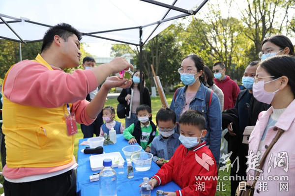 圓溜溜的東紅獼猴桃、“復活”的千年古蓮子、珍稀瀕危植物書簽生動地呈現(xiàn)出植物園的科研成果,亮閃閃的巖礦化石、栩栩如生的蝴蝶標本、精巧的建筑模型令人目不暇接,智能垃圾桶、會投籃的機器人、炫酷的無人機讓人感受到智能科技的魅力……植物園的大草坪上,武漢本地的17家科教機構,從行業(yè)角度出發(fā)展現(xiàn)科技水平,為公眾奉上了一場科學盛宴。