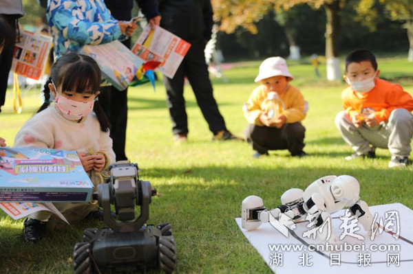 “機器人是在做瑜伽嗎?它們還會跳雙人舞!”隨音樂舞蹈的機器人令小朋友們頗感新奇。華中農(nóng)業(yè)大學博物館與中國地質(zhì)大學逸夫博物館展出的動物標本、恐龍化石與礦石則吸引了眾多游人的注意力。人們駐足在展位前,領略科學的美麗。
