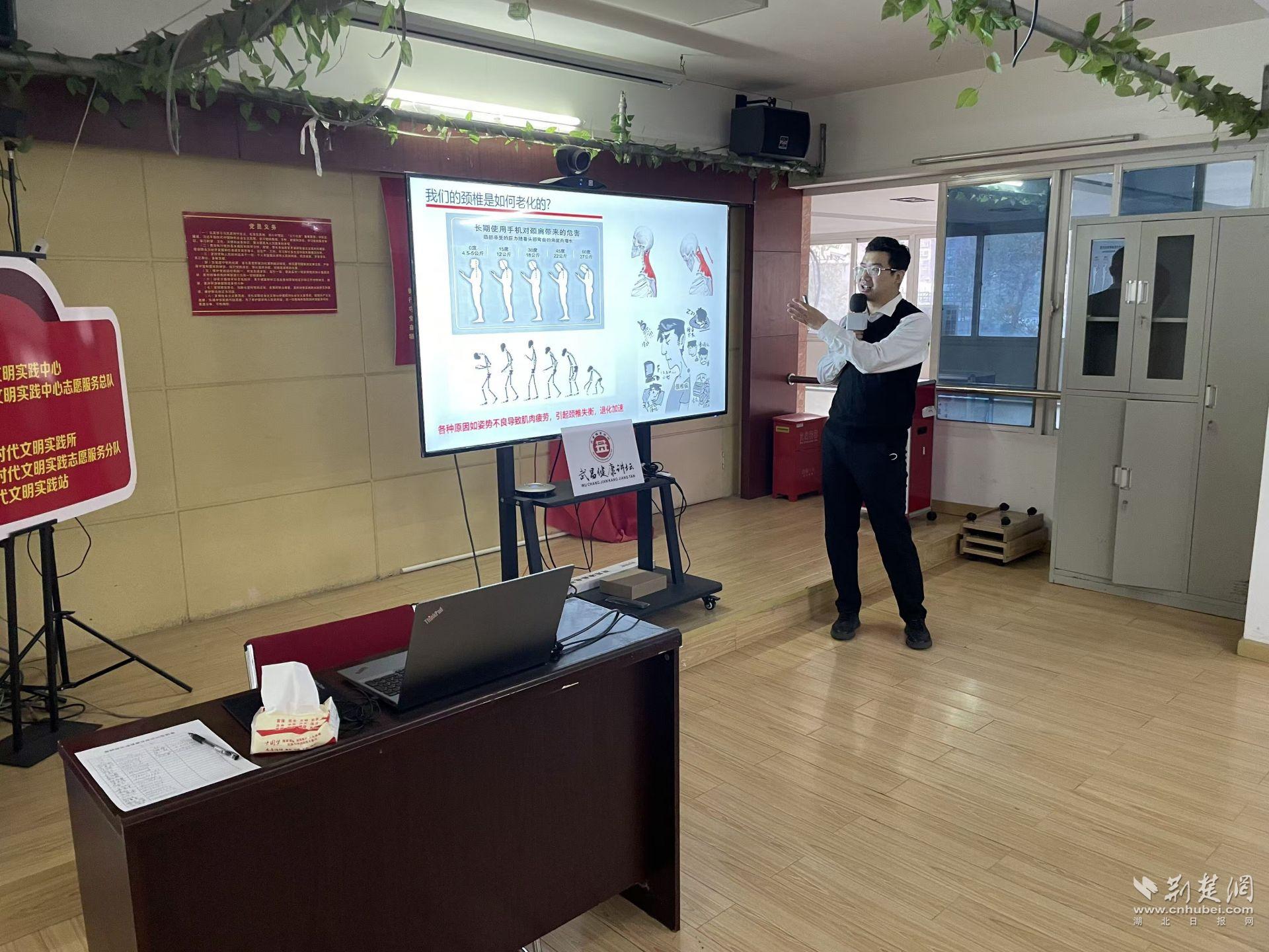 荊楚網(wǎng)(湖北日報(bào)網(wǎng))訊(通訊員 余小穎)為普及健康知識,提升居民健康素養(yǎng),12月25日上午,武昌區(qū)黃鶴樓街道讀書社區(qū)在社區(qū)二樓會議室開展“如何保護(hù)我們的頸椎”主題健康講壇活動?;顒友埼錆h市三醫(yī)院骨科主任范明宇,為社區(qū)居民帶來一堂干貨滿滿的健康講座。