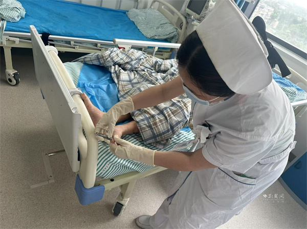醫(yī)護(hù)人員為患者修剪指甲。 通訊員供圖