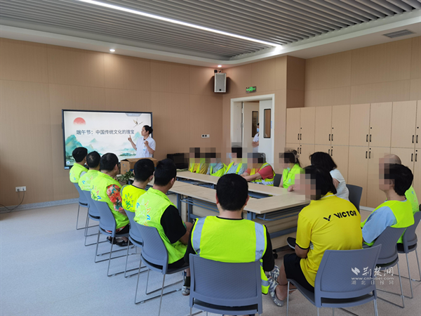 “釣粽子”比賽將現(xiàn)場氣氛推向高潮?;颊邆冞\用特制魚竿,將細繩懸掛的魚鉤對準桌上的粽子和咸蛋,現(xiàn)場笑聲此起彼伏?!搬灥臅r候要穩(wěn),就像慢慢解開心里的結?!被颊咝》疾唤l(fā)出感概。