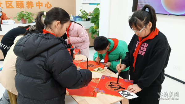 社區(qū)黨委充分發(fā)揮核心引領(lǐng)作用,積極統(tǒng)籌資源、搭建共建平臺?;顒蝇F(xiàn)場洋溢著溫馨祥和的節(jié)日氛圍。未來實驗小學(xué)的孩子們帶來精心編排的文藝節(jié)目,充滿朝氣的歌曲、舞蹈與詩朗誦為頤養(yǎng)中心注入了青春活力,贏得老人們陣陣掌聲。學(xué)生志愿者還與武昌區(qū)人大代表、未來實驗小學(xué)校長鄧徐念一起揮毫潑墨,書寫“?!弊峙c新春寄語,在筆墨間傳遞對長者最真摯的祝福。