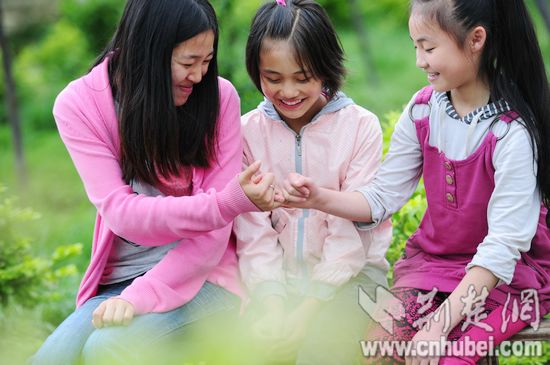 27日上午,坐在本禹希望小學(xué)操場邊,劉小慶與學(xué)生羅帥蘭勾了勾手指。